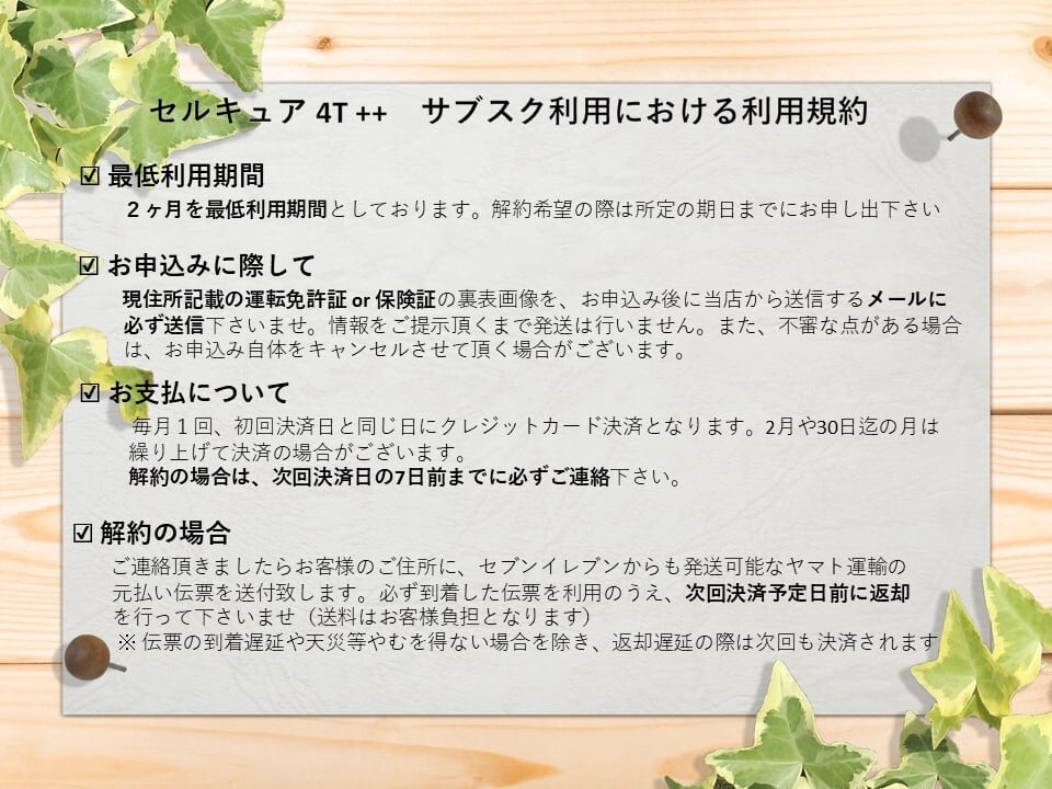 お申込みの際は必ず画像2枚目・3枚目の利用規約をご確認のうえ、お申込み下さいませ
